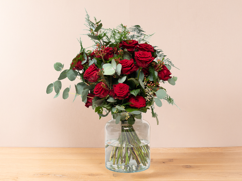 Kies het aantal rozen voor het boeket. Bij levering voor vandaag, neem dan eerst contact met ons op voor beschikbaarheid van de rozen.